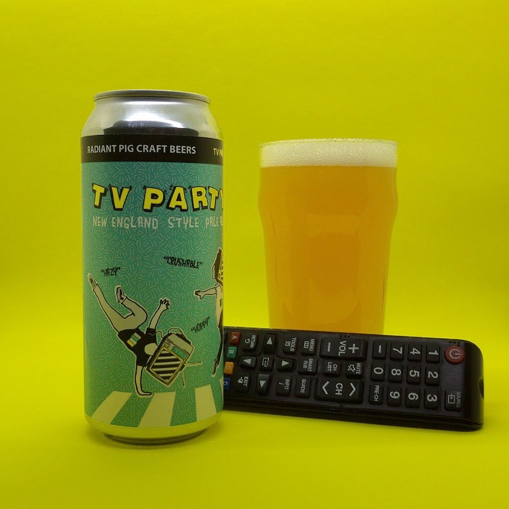 I picked up a can of TV Party New England IPA at my go-to local beer store because the can caught my eye while sitting on the ‘new stock’ shelf. I’ve had a couple of other beers from Radiant Pig and they’ve all been pretty good so why not give another one a try?