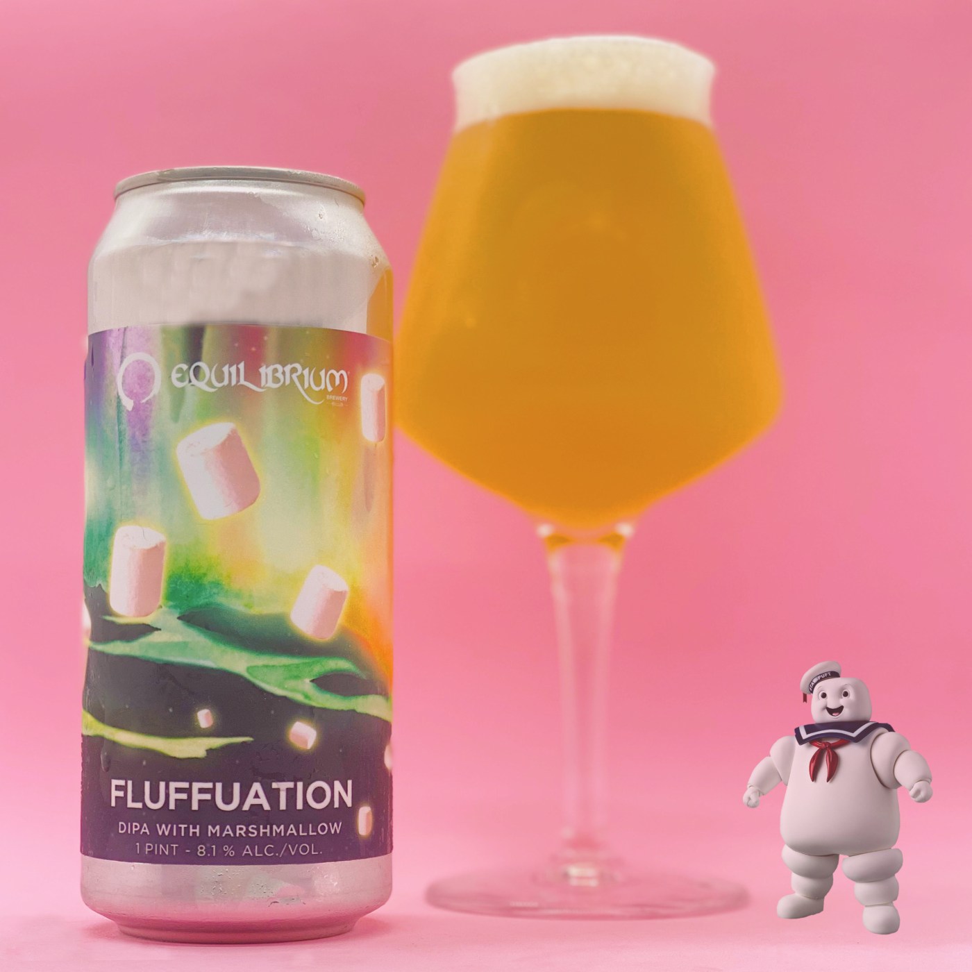 Comments: Equilibrium’s “Fluctuation” Double IPA gets a fluffy twist with the addition of marshmallows. Fluffuation pours a hazy golden color with two fingers of bright white head made up of tiny, tight bubbles. The aroma is of orange creamsicle, passion fruit, pineapple, and vanilla. The flavor is citrusy and sweet, with a clear pop of marshmallow at the end. This medium to full-bodied beer is smooth and creamy. It makes me wonder why I don’t typically like marshmallows, because this beer makes them seem pretty delicious.